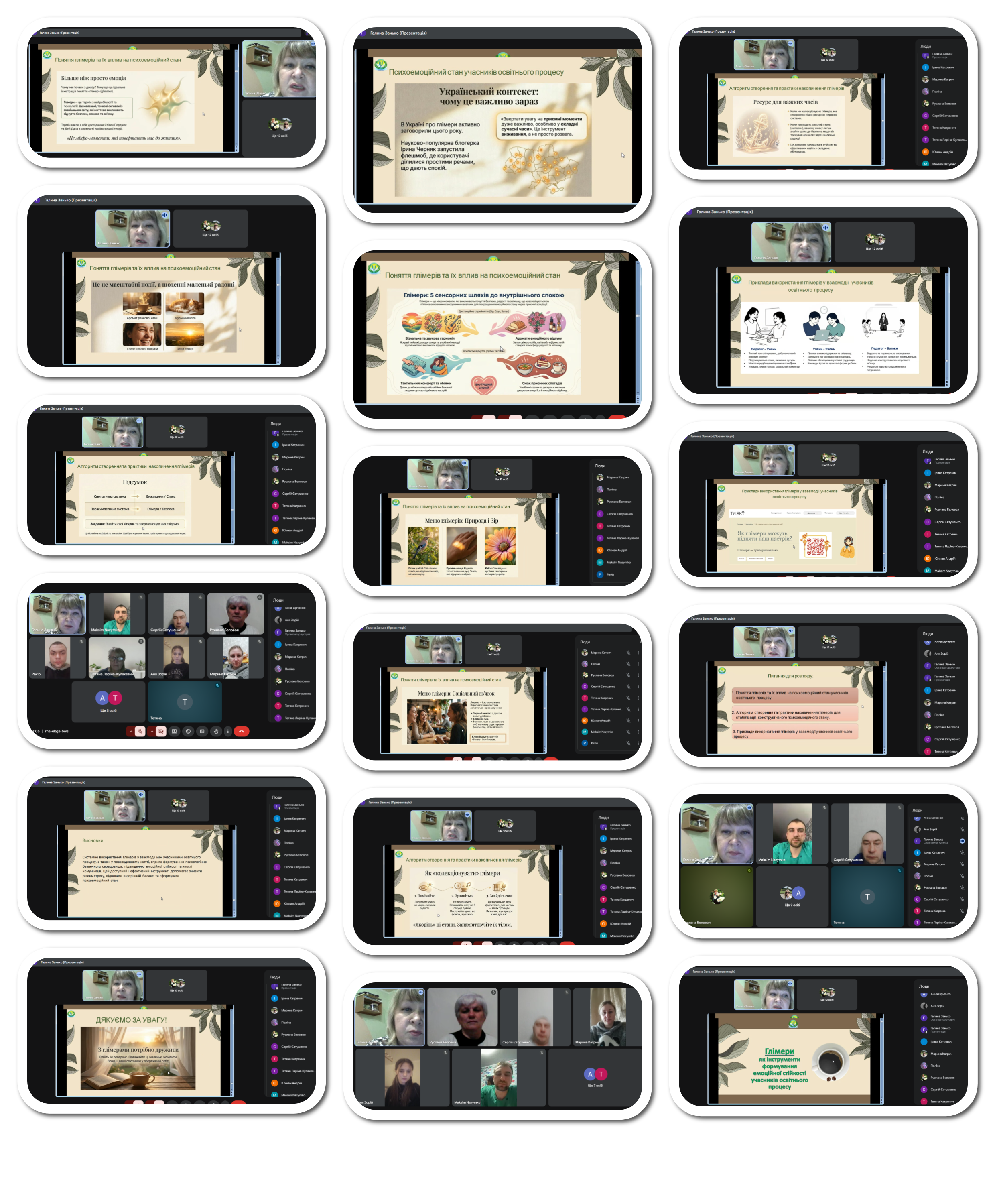 Під час вебінару говорили про те, як помічати власні «світлі моменти», як свідомо створювати їх у щоденному освітньому процесі та як за допомогою простих інструментів підтримувати себе й інших.
