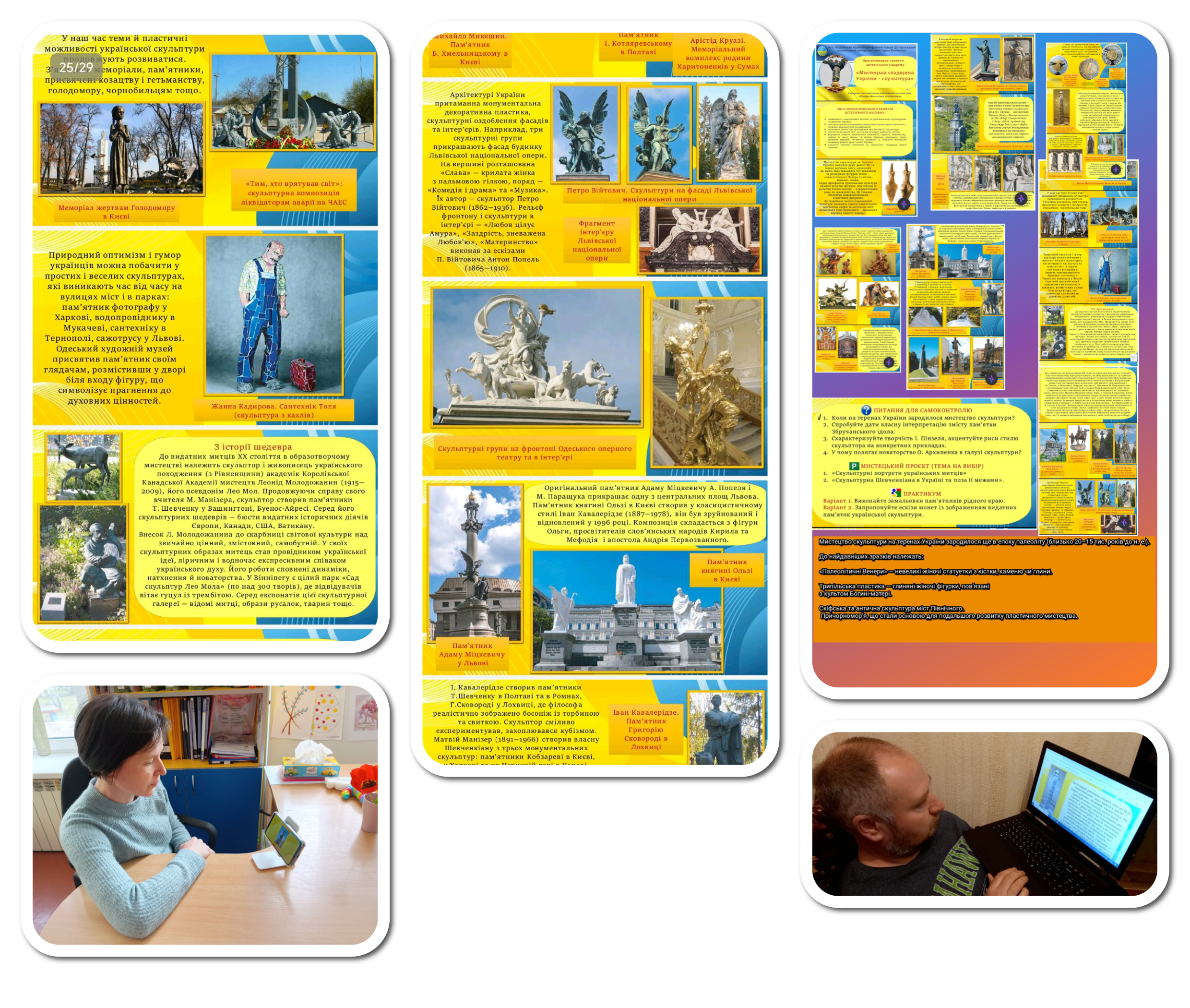 Просвітницьке заняття стало одним з шляхів пізнання Краси та Гармонії скульптурної спадщини нашої держави. Освітяни дізналися про розвиток скульптурного мистецтва в історичній послідовності, починаючи з трипільської культури до сьогодення. Завершальним етапом заняття стало виконання практичних завдань: студенти надали відповіді на питання щодо самоконтролю, долучилися до розробки мистецького проєкту, який було запроваджено заздалегідь до проведення заняття; взяли участь у виконанні запропонованого практикуму.