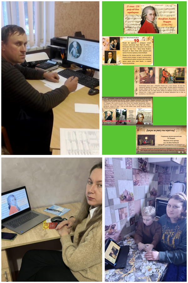 У межах цієї музично-мистецької події викладачка коледжу навчальних дисциплін естетичного напряму підготувала для освітян цікавий і змістовний відеоролик «В.А. Моцарт», в якому розкрито життєвий та творчий шлях композитора, розроблено сторінки десяти найцікавіших фактів з короткої, 35-ти річної долі видатного композитора, музика якого дивує та вражає людство більше 2-х століть. Здобувачі освіти дізналися, що у творах Моцарта виразно проступають усі найбільш яскраві риси його стилю, насамперед, вражаюча, яскрава, витончена та рельєфна молодика. Освітян коледжу вразило, що композитор за короткий життєвий шлях залишив для людей понад 600 творів, в кожному з яких і сьогодні продовжує жити частинка його душі.